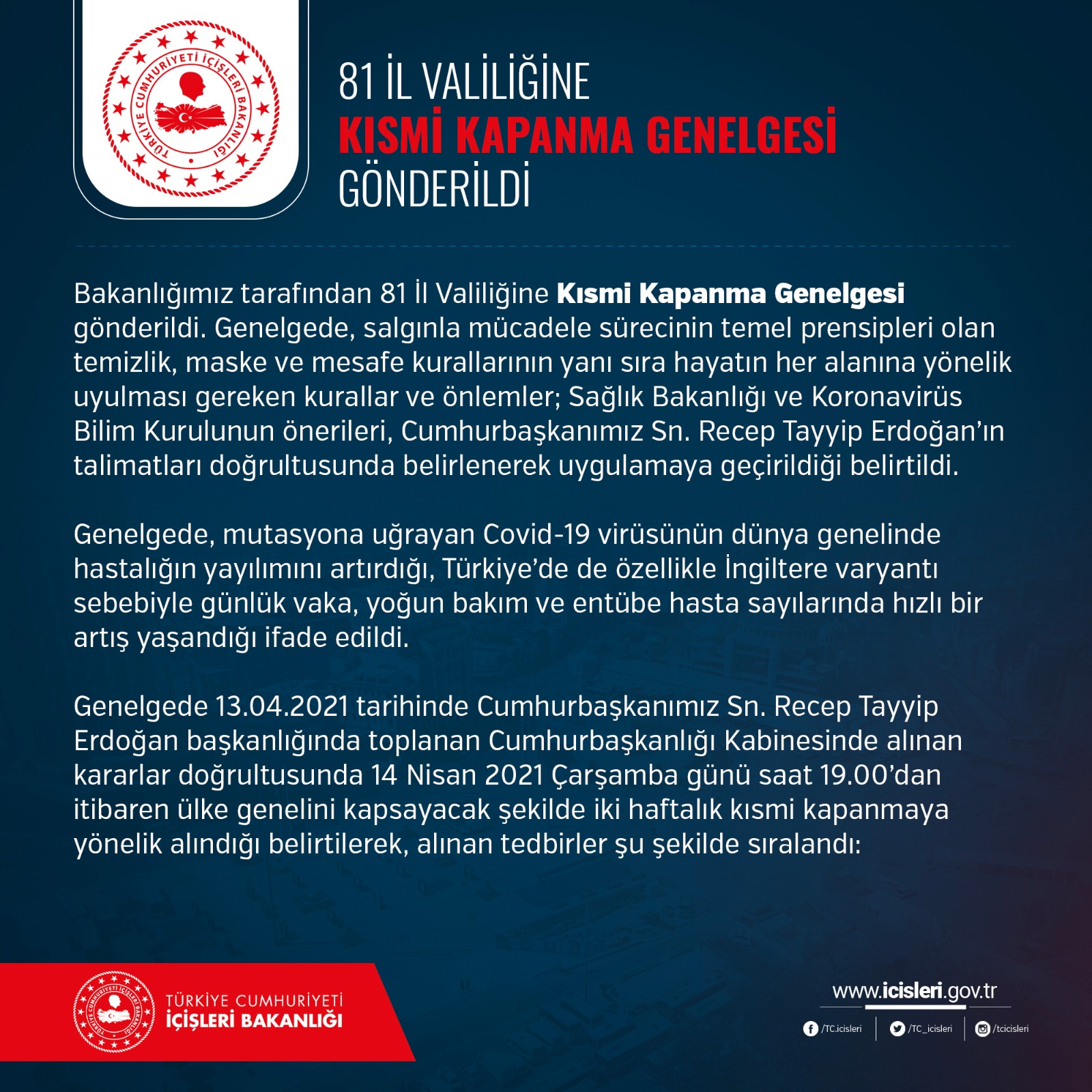 2 Gun Sokaga Cikma Yasagi from www.icisleri.gov.tr Genelge ile yeni koronavirüs tedbirleri için belirlenen tüm detaylar paylaşılmış oldu. Acil yardım malzemelerinin afad lojistik depolarından sevkiyatı. Genelge, ancak kendisinden önce gelen tüzük ve yönetmelikte yer alan hükümlerin nasıl uygulanacağını gösterebilen bir açıklama türüdür, kendisi bir hüküm koyamaz. 1 haziran i̇çişleri bakanlığı genelgesi birkaç dakika önce yayınlandı. 680 sayılı k.h.k_nın uygulanması hakkında genelge. .konu genelge ekinde yer alan ve işveren ile çalışanın beyanı/taahhüdüyle manuel doldurularak imza altına alınan çalışma izni görev belgesi formu da denetimlerde ibraz edilebilecektir. Genelge ya da tamim yönetmeliklerin uygulanmasında yol göstermek amacıyla ilgililere gönderilen yazıdır. Birçok internet kullanıcısı koronavirüs salgını nedeniyle i̇çişleri bakanlığı'nın gönderdiği genelge sonrası genelge ile ilgili internette arama yapmaya başladı.
